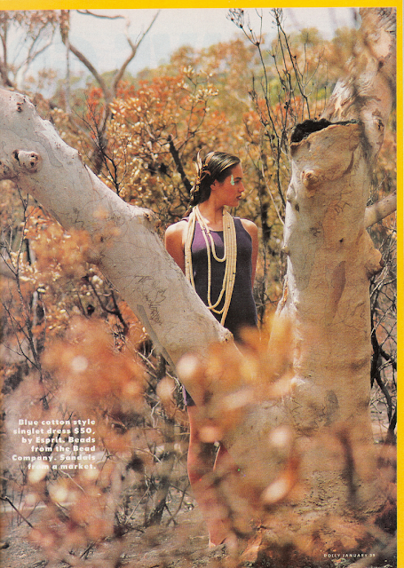 I'm not really the outdoorsy type, but there is something about how this Sunburnt Country spread is shot that I really love. It is shot by the same photographer as the cover photo, and stars the Covergirl contest winner of 1989 - Natalie Kirk who was all of 13 years of age at this point! The outfits she's wearing on their own are unremarkable, but have been styled really well to fit the earthy theme.